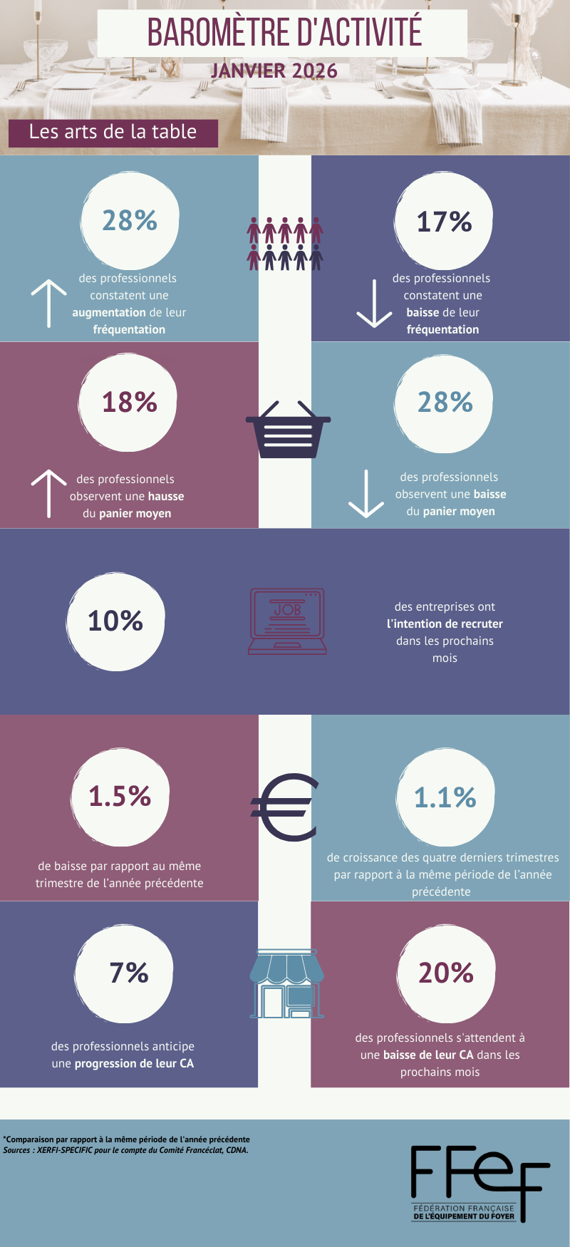 Cette étude est réalisée sur plus de 800 entreprises, avec un focus sur chaque secteur d’activité de la FFEF (arts de la table, droguerie, équipement du foyer).