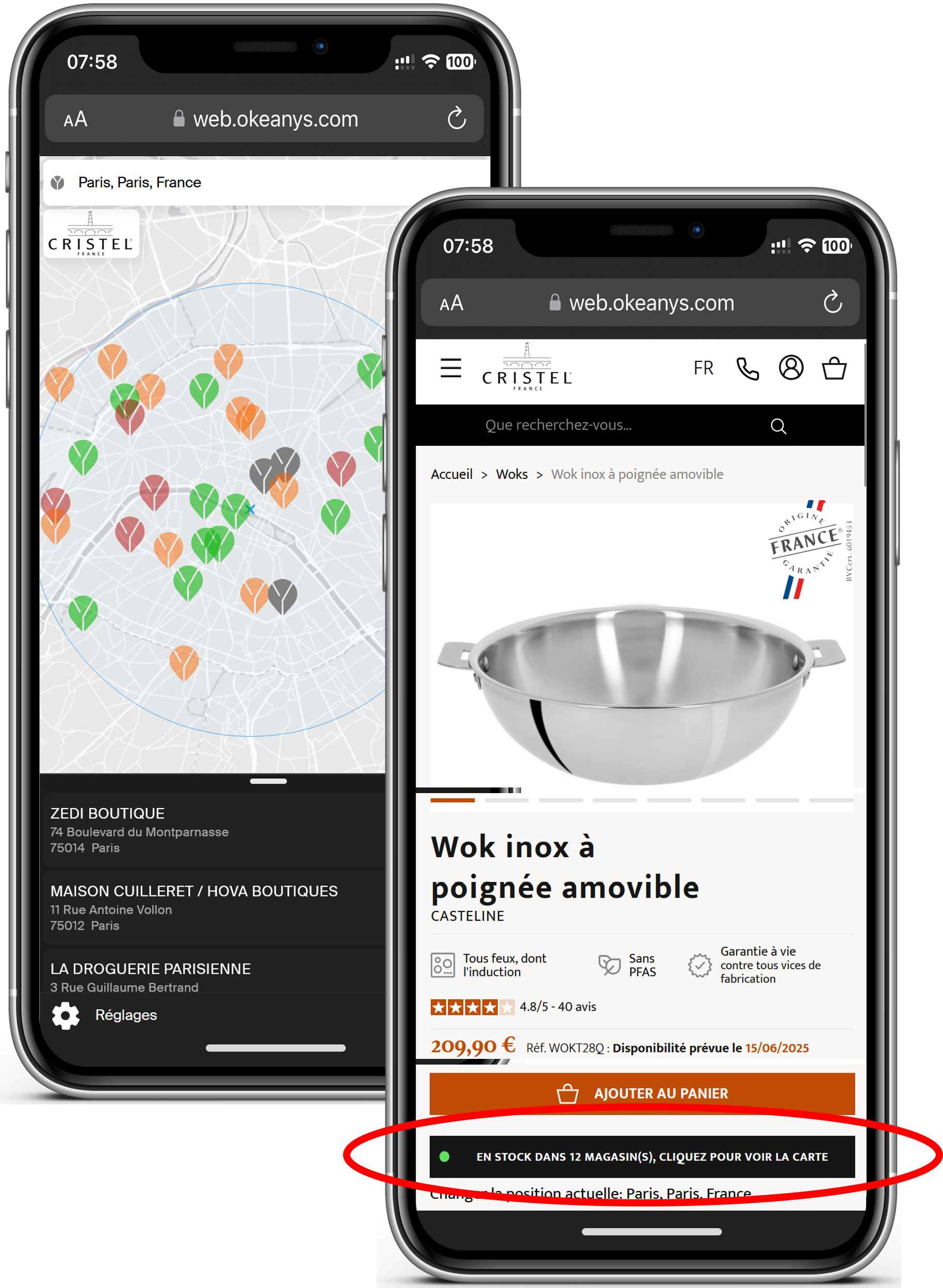Par exemple, sur le site de Cristel, un internaute peut voir qu’un produit est disponible dans quatre magasins à Lyon. Cette information contribue à dynamiser les ventes aussi bien dans les enseignes partenaires (comme Trouble Obsessionnel Culinaire ou Culinarion) que dans les commerces indépendants (comme Francis Batt ou Couteauxduchef).